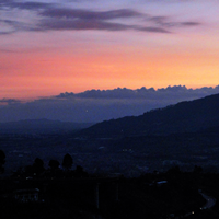 Noche de estrellas y luceros, presagio de un día primaveral en la tierra del café. En el horizonte se divisan los primeros destellos del sol naciente; una acuarela de t... |
